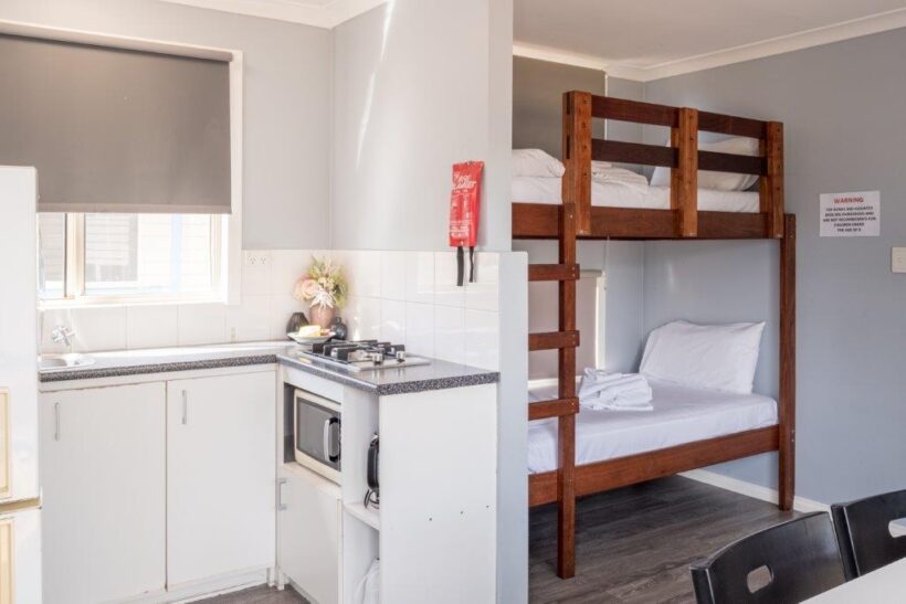 This one-bedroom cabin is a great fit for families, sleeping up to four guests with a queen bed and a set of bunk beds. It features a private bathroom, air conditioning, and a TV for relaxed evenings. The kitchen is equipped with a fridge, toaster, microwave, and stovetop, offering everything needed for a comfortable and convenient stay.